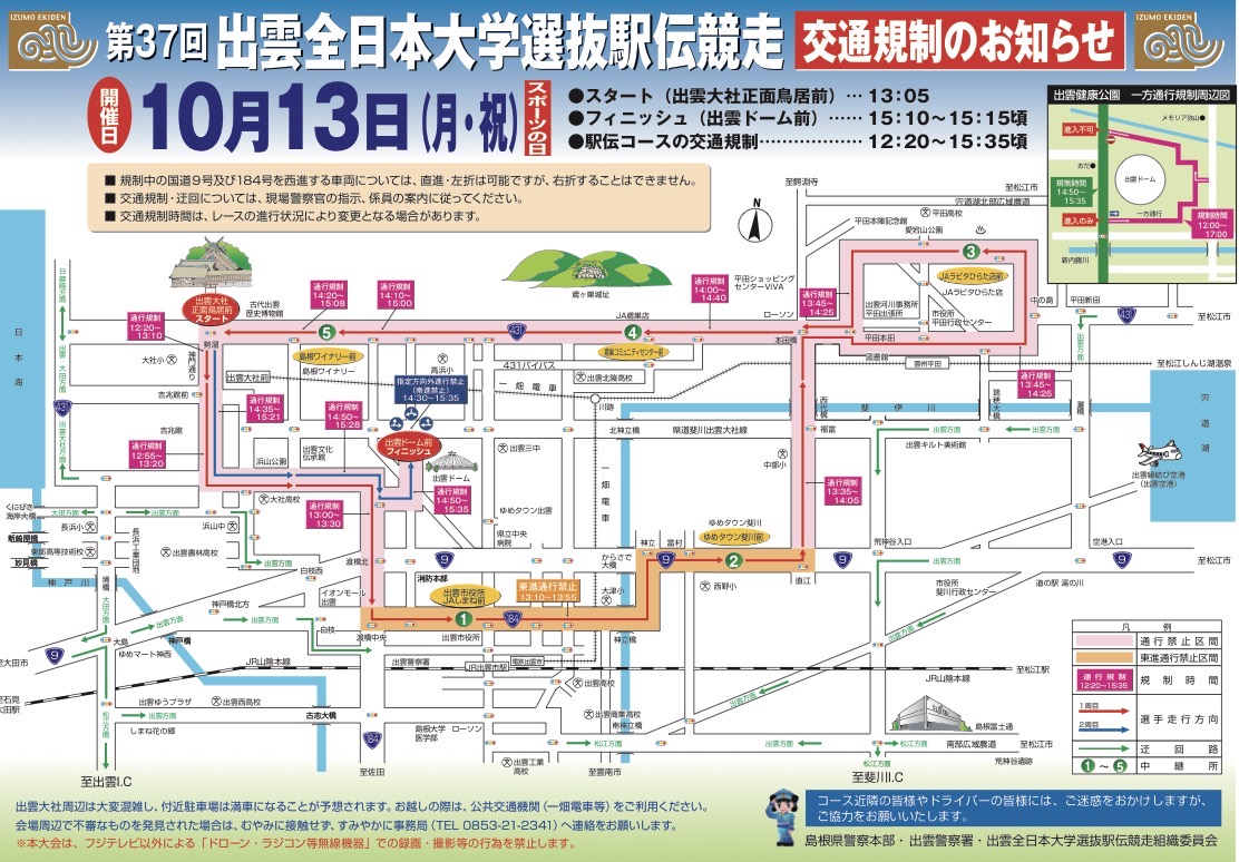 10月13日(月)は「出雲駅伝」が開催されます!
